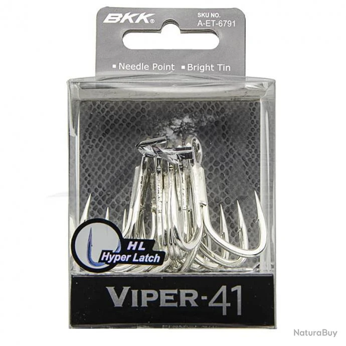 Le Viper-41 est un Hameçon triple 4x fort et brillant conçu avec des pointes longues et droites et un coude très agressif, développé à l’oeil aux techniques de topwater.