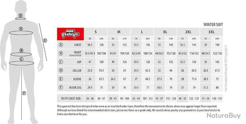 Nouveauté 2022 : La combinaison Winter Suit V2 de la marque Fox Rage, de la taille S à XXXL.