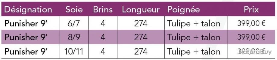 Caractéristiques de la canne JMC Punisher 9′ Soie 10/11 4 Brins/