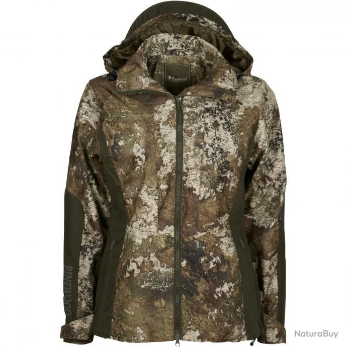 Veste pour femmes Furudal Tracking Camou de PINEWOOD en matière silencieuse et respirante avec des empiècements stretch confortables. Le motif de camouflage Official True Timber® fait de cette veste à la coupe féminine un compagnon indispensable pour la chasse active. Le tissu extérieur ciré et anti-moustiques a été doté d’une imprégnation Bionic-Finish® Eco résistante à l’eau et aux salissures pour une protection supplémentaire. La doublure en mesh confortable à l’intérieur assure une circulation agréable de l’air.