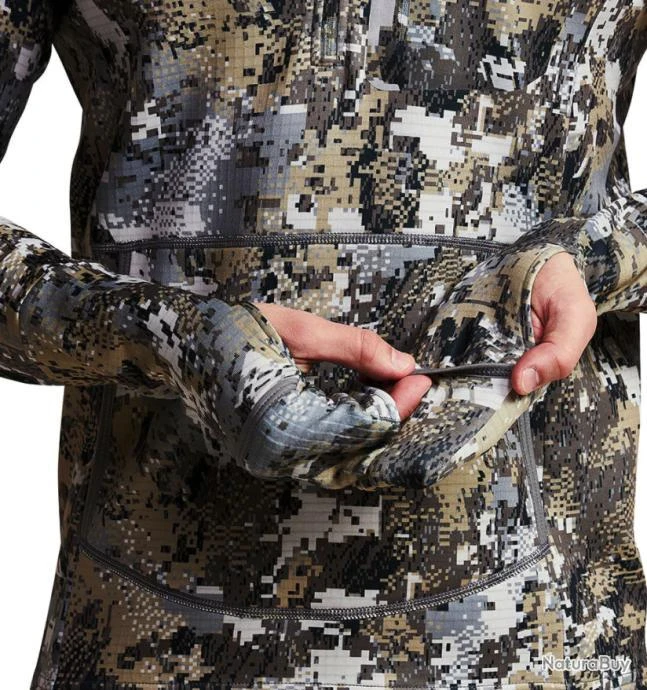 Le nouveau Fanatic Hoodie a les caractéristiques d’un hoodie traditionnel mais transformé en un vêtement technique et silencieux pour la chasse. Fabriqué avec un tissu élastique qui permet une grande mobilité. Il possède un intérieur en polyamide cardé doux à haute capacité thermique, disposé en forme de grille avec des canaux intermédiaires pour augmenter la ventilation et la respirabilité.